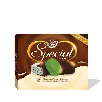 Indulge in the variety of Chocolate-coated Polvoron—Chocovron Special Treats ❤️ Inclusions: 🤎 Creamy & Chocolatey Cookies and Cream (2pcs) 💛 Crunchy & Chocolatey Pinipig (2pcs) 💚 Milky Matcha (2pcs)