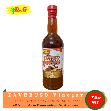 Natural ZAVRRUSO VINEGAR Tasty Sweet, Spicy Sugar Cane Vinegar All Natural, No Preservatives No Additives Added Best for: Marinating, barbeque, grilled, fried, meat, fish crackers. Darkening and settling of sediments are natural occurrences and will not affect the high quality of the products. Shake well before using,.Store at room temperature With FDA LTO & CPR Ingredients : Sugarcane Vinegar, Brown Sugar, Muscovado, Siling Labuyo (Chili), Garlic & Iodized Salt For Wholesale DM for more details