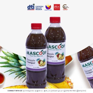 Delectable and all natural pineapple vinegar made from locally grown and freshly picked pineapple in the farms of Masissit-Dacal Livelihood Cooperative in the town of Sanchez Mira, Cagayan.