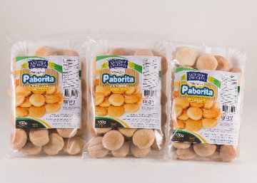 Paborita are Filipino disc-shaped biscuits with a flaky texture. They are made with wheat flour, sugar, skim milk, salt, baking powder, alum, and cooking oil.