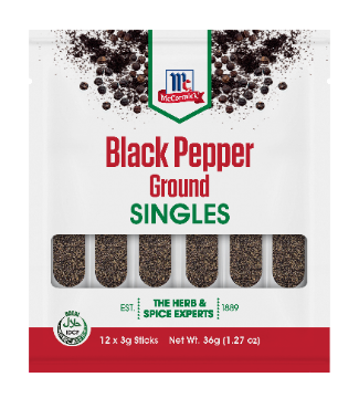 Whole or ground, gray to black in color, has a penetrating aroma and is hot, biting, and pungent in flavor. Peppermill Texture is coarse and has a dark brown to black color. It is aromatic and possesses a hot, biting, and pungent flavor.